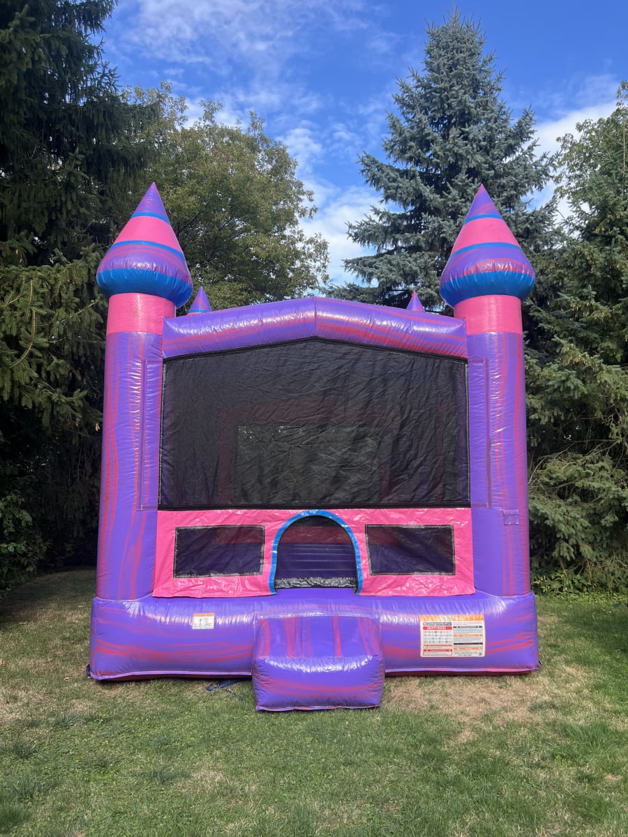 Elevate your next celebration with the enchanting Pink and Purple Castle—the perfect centerpiece for any girl's birthday party, family gathering, or special event. Designed with a charming pink and purple color scheme, this inflatable castle brings fairytale dreams to life and ensures hours of fun and laughter for children.